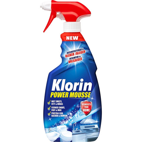 Klorin Power Mousse Är En Mångsidig Rengörinsspray Med Blekmedel Och Desinfketerande Egenskaper. Effektid På Många Ytor – KLORIN
