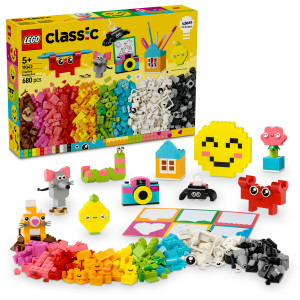 Ålder – 5+ – Dyk ner i en låda med färgglada LEGO® klossar och låt fantasin flöda! Fyll ditt rum med roliga och funktionella föremål som du har byggt själv. Du kan sätta fast teckningar och meddelanden på dina modeller och hänga upp dem på väggen så att alla kan se dem. Glöm inte att ge dina LEGO skapelser glada ansikten – för LEGO Classic Kreativ gladlåda handlar om att ha roligt och vara superkreativ!