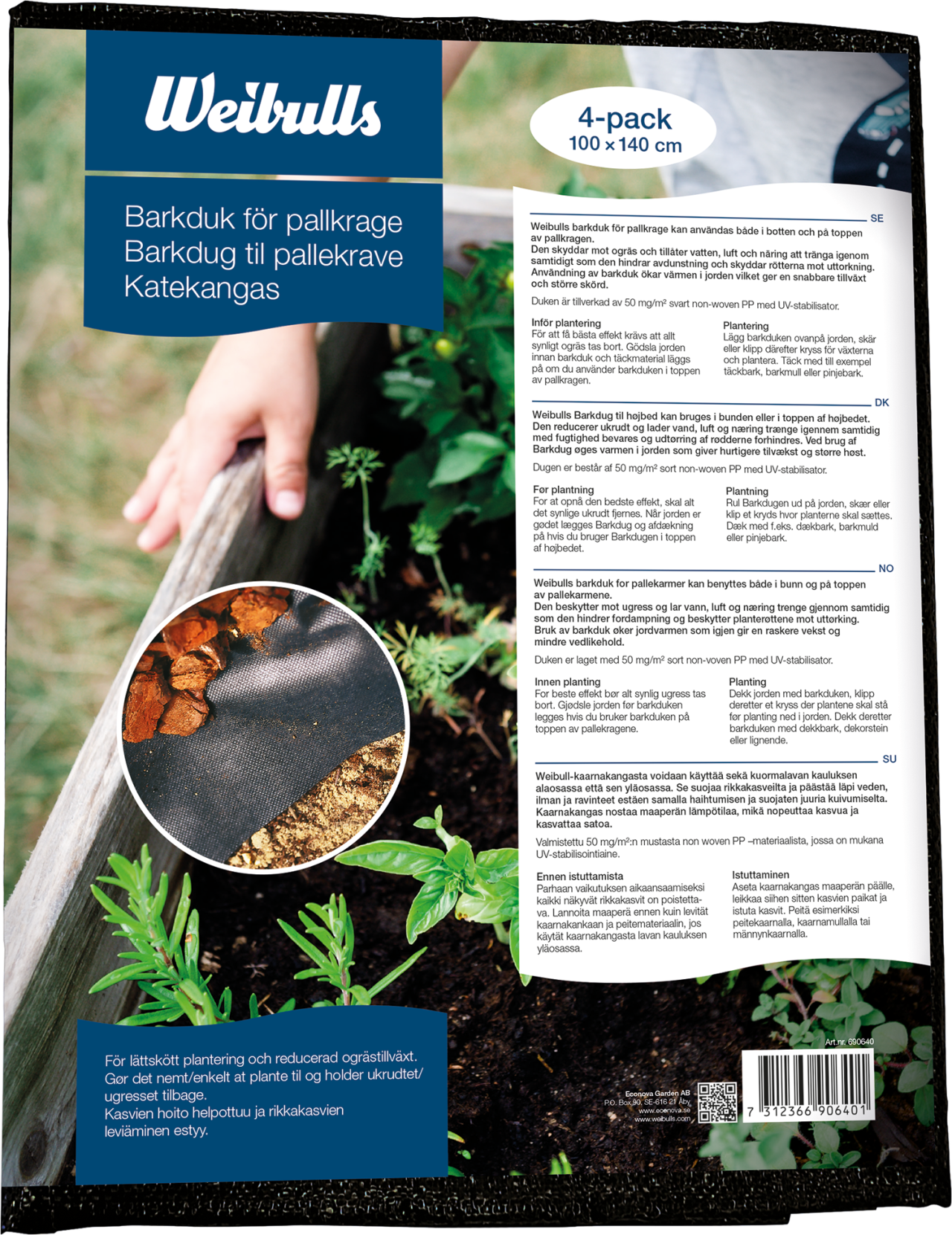 Barkduk Mot Ogräs I Pallkragen – Lägg I Botten Eller På Toppen. Gör Hål För Plantorna Och Täck Med Tex Täckbark. Släpper Igenom Luft, Vatten Och Näring Men Stänger Ute Ljus. Jorden Andas, Värme Och Fuktighet Bevaras Så Rotuttorkning Och Avdunstning Hindras.