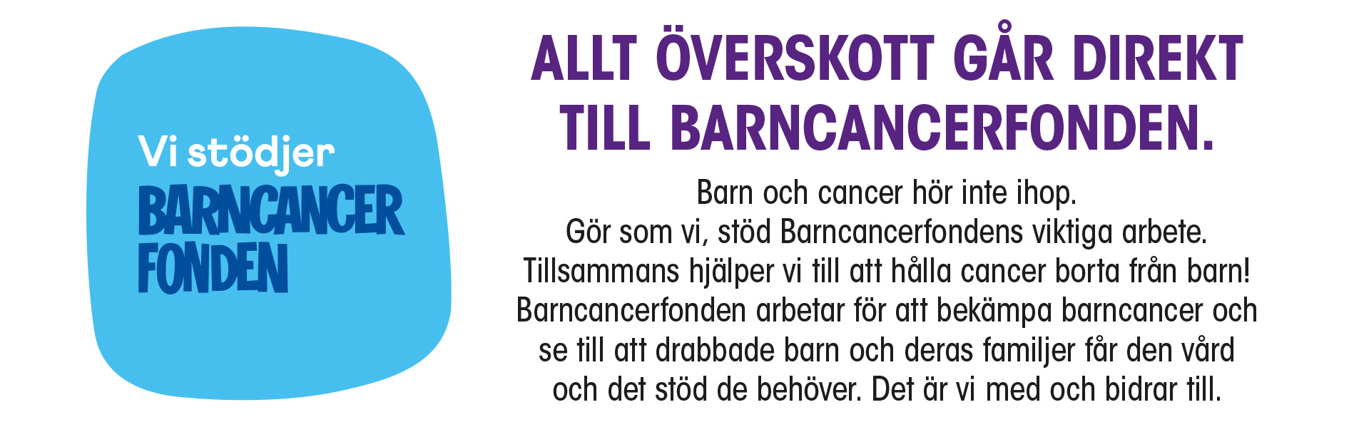 Barn och cancer hör inte ihop. Gör som vi, stöd Barncancerfondens viktiga arbete. Tillsammans hjälper vi till att hålla cancer borta från barn!