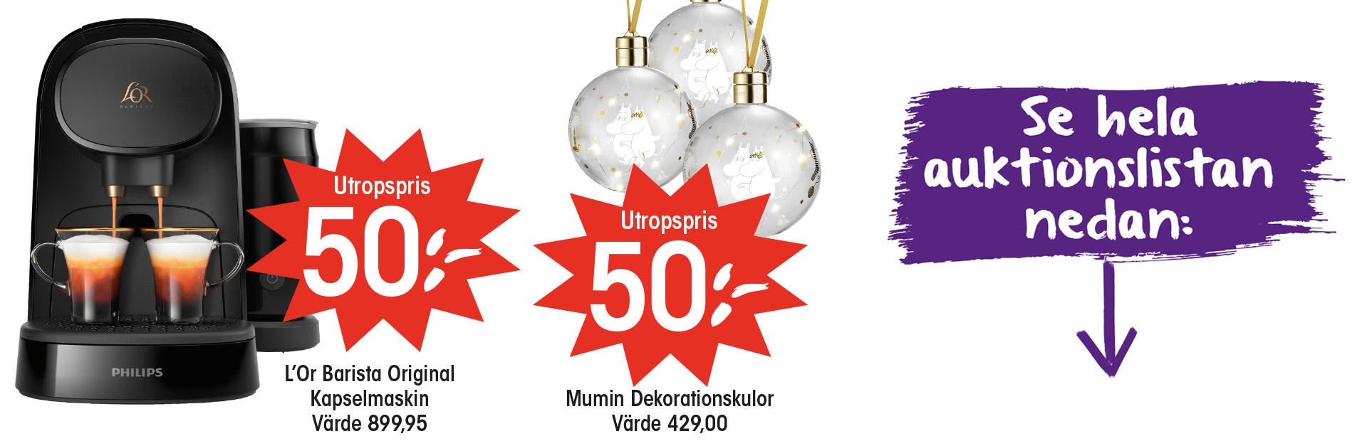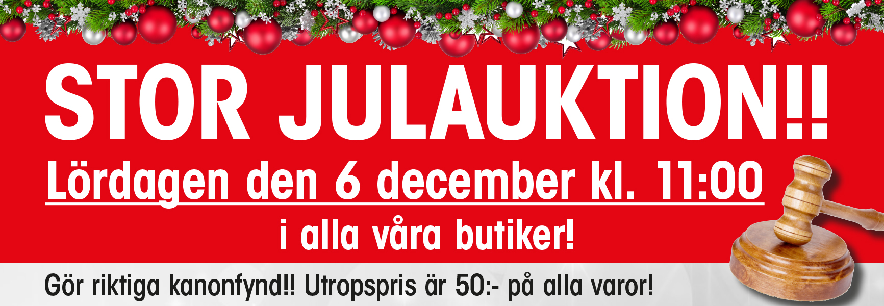 Lördagen den 6 december kl. 11:00 i alla våra butiker. Gör riktiga kanonfynd!! Utropspris är 50:- på alla varor!