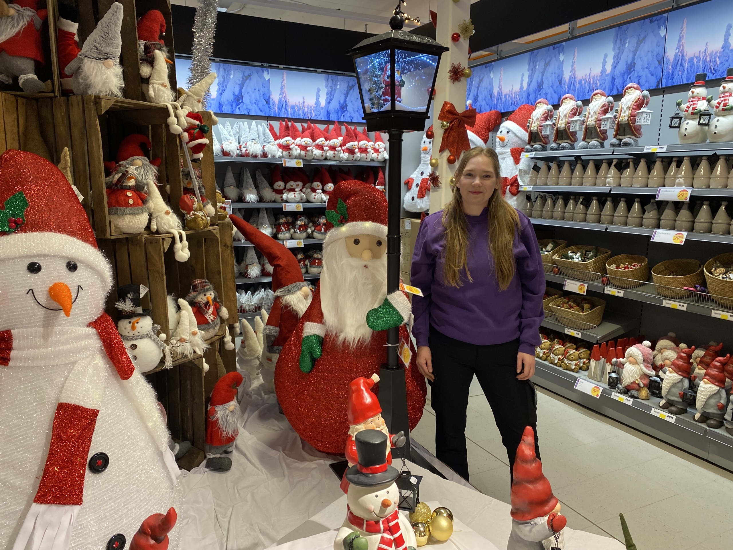På avdelningen är det fullt av pynt som skapar mysig julstämning för kunderna.