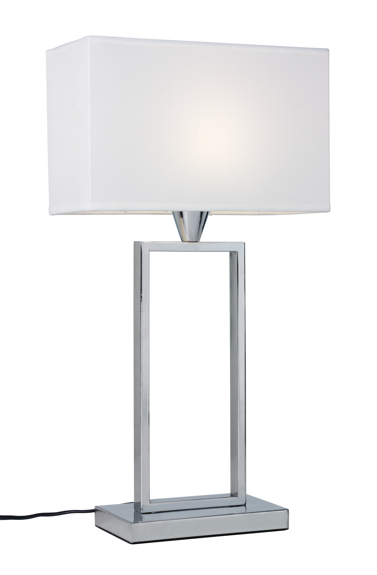 En Modern Stilren Bordslampa I Kromad Metall Och Med En Rektangulär Vit Textilskärm. Höjd 505 Mm 1Xe14 – COTTEX