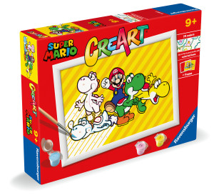 CreArt-seten innehåller allt som barn behöver för att bli konstnärer. Seten innehåller en högkvalitativ fin pensel och tjock akrylfärg som hjälper blomstrande konstnärer uppnå fantastiska resultat. Med CreArt slipper blivande konstnärer svarta konturer. Istället är kanterna tryckta i den färg som området ska målas med. Det innebär att när målningen är klar, kommer kanterna och konturerna att se proffsigare ut och du får ett slutresultat som du kan vara riktigt stolt över. Super Mario