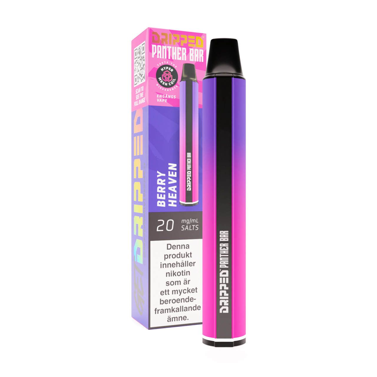 Smak av mixade skogsbär – ca 800 bloss per vape, 20 mg nikotin
