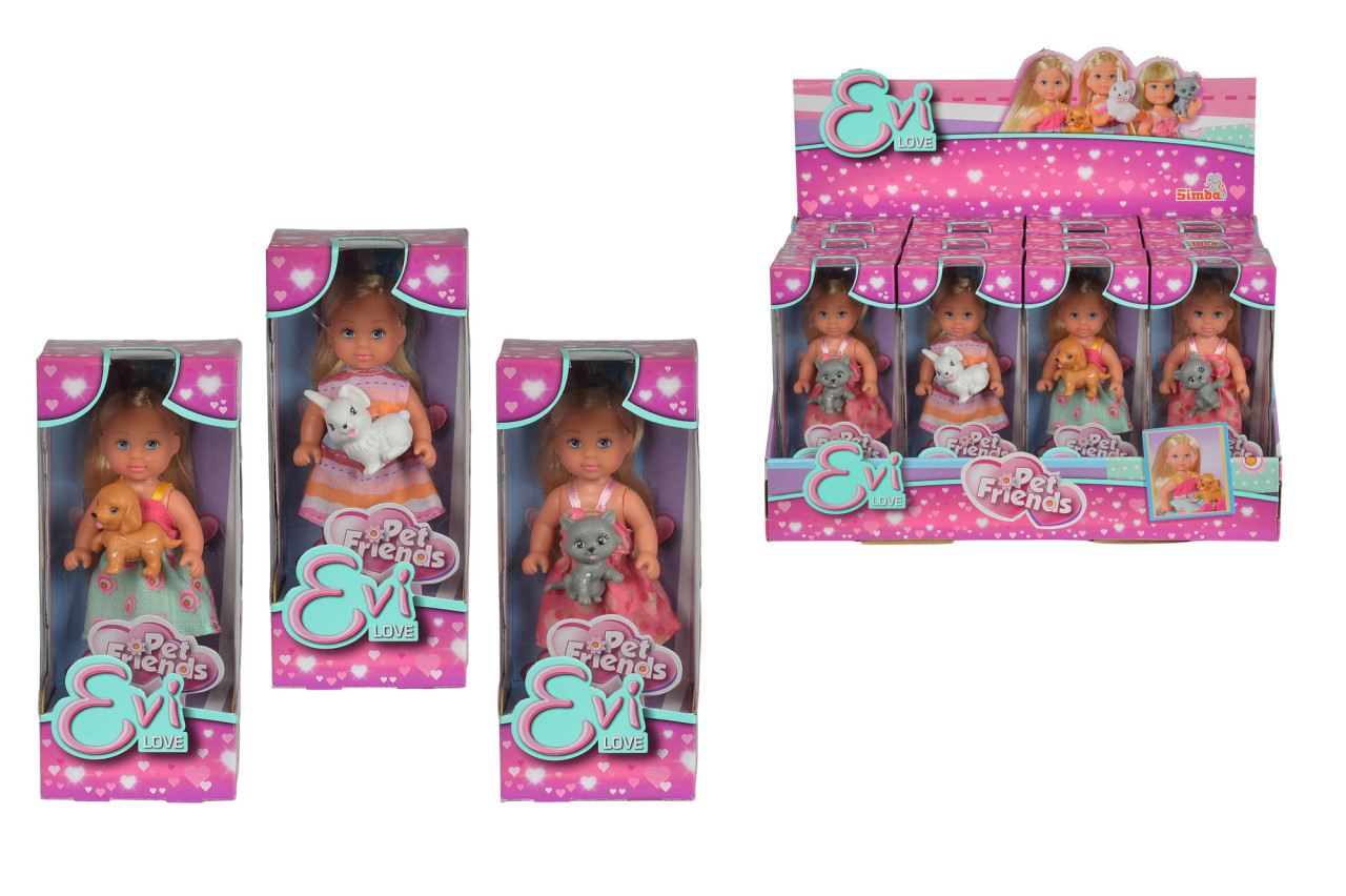 Evi I Tre Olika Outfits I Sällskap Av Ett Sött Djur. 12 Cm. Från 3 År. – EVI
