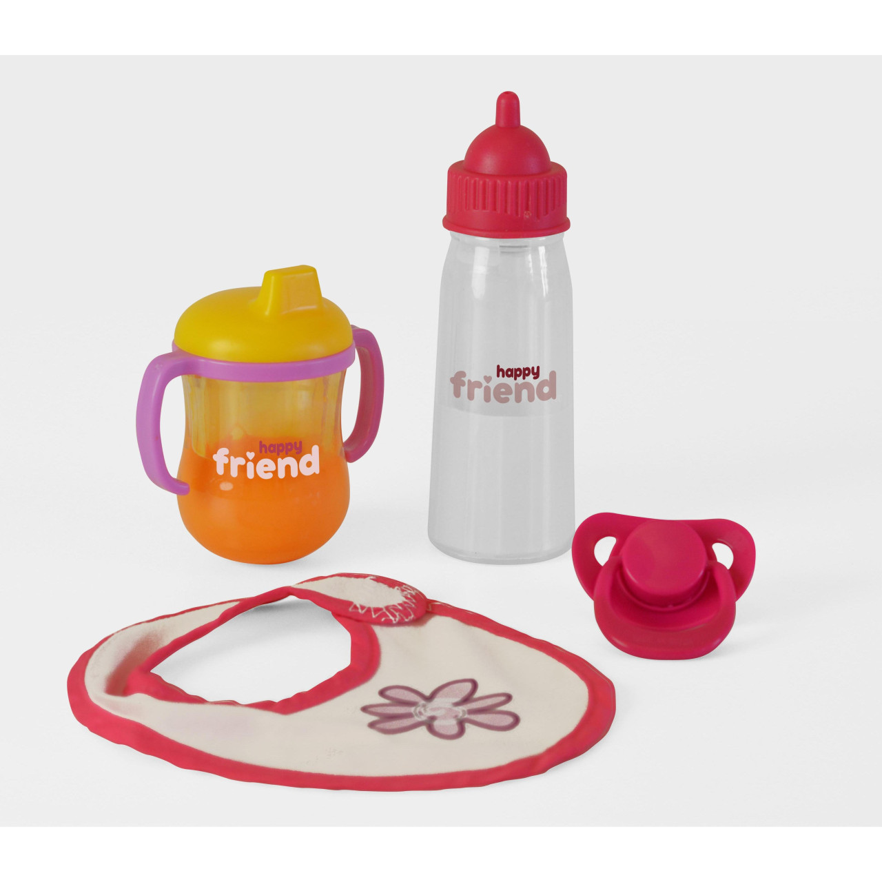 Matdags! Din Docka Kommer Alltid Att Bli Glad Över Att Se Det Här Fina Matpaketet! Nappflaska, Juicekopp, Haklapp Och Napp Ser Till Att Din Docka Har Allt Det Den Kan Behöva, För Att Bli Mätt Och Nöjd. Innehåller 4 Delar: Mjölk-Nappflaska, Juicekopp, Haklapp Och Napp. Från 2 År. – HAPPY FRIEND