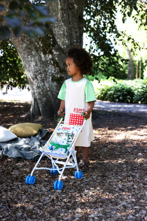 Ut På Äventyr Med Lilla Gubben! Pippis Sulky Är Den Perfekta Dockvagnen Att Ta Med På Resan. Dockvagnens Mönster Är Hämtade Från Pippis Trogna Häst, Lilla Gubben Och Han Finns Även Med Som Illustration På Klädseln. Spänn Fast Säkerhetsbältet Så Dockan Är Redo För En Promenad Ute I Solen!