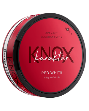 Knox Karaktär Red White är en originalstor prilla som har en smakkombination av fylliga röda bär och tydlig tobaksnärvaro. Produkten kommer i originalstyrka och har låg rinnighet.