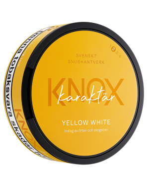 Knox Karaktär Wellow White har en originalstor prilla med en smakkombination av örter och skogsbär med tydlig tobaksnärvaro. Produkten kommer i originalstyrka och har låg rinnighet.