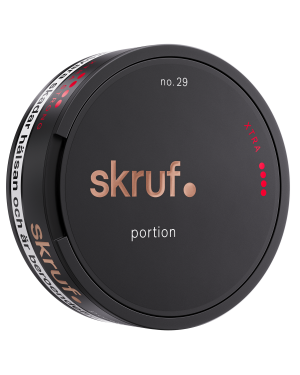 skruf Xtra Stark Portion är ett snus med en ren och mild tobakssmak. Smaken har inslag av bergamott och rosenolja. Snuset tillverkas med en större andel tobaksblad vilket medför en ännu högre nikotinhalt. Portionspåsarna är varsamt återfuktade i efterhand för att ge en mer långvarig smakupplevelse.