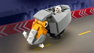 Setet har massor av lekalternativ för att sätta fart på berättandet. Barn kan kan hitta på roliga sätt för Shadow att kämpa mot RhinoBot innan han flyr på sin motorcykel.