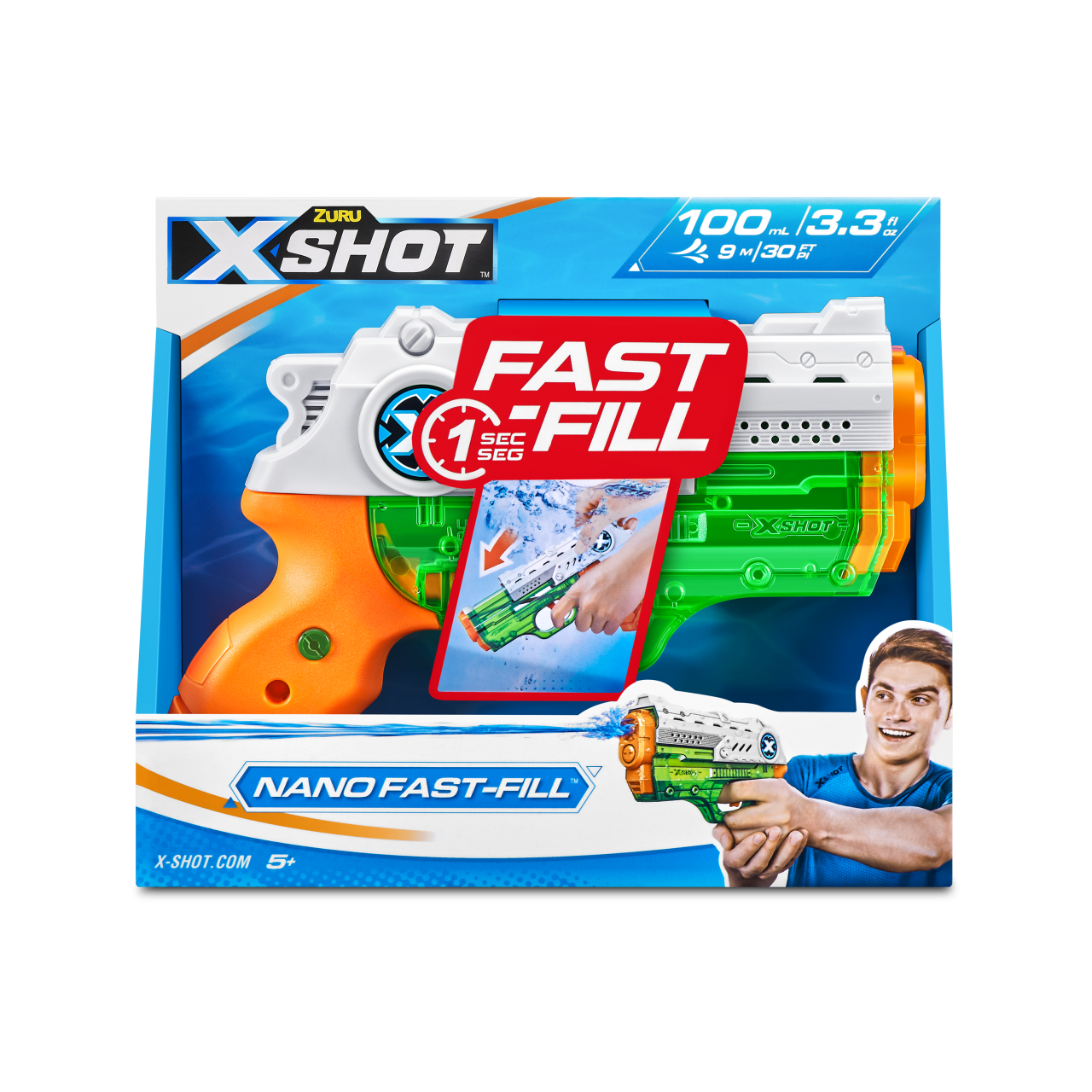 X-Shot Nano Fast-Fill Låter Dig Fylla På Din Blaster På Bara 1 Sekund Och Komma Tillbaka Till Vattenstriden Långt Före Dina Motståndare. Bara Sänk, Fyll Och Stäng Med Snabbförseglingsteknik. Låt Inte Storleken På Nano Fast Fills Lura Dig! Liten Men Kraftfull, Den Skjuter Upp Till 9 Meter Med Sin 100 Ml Vattentank! – X-SHOT WATER
