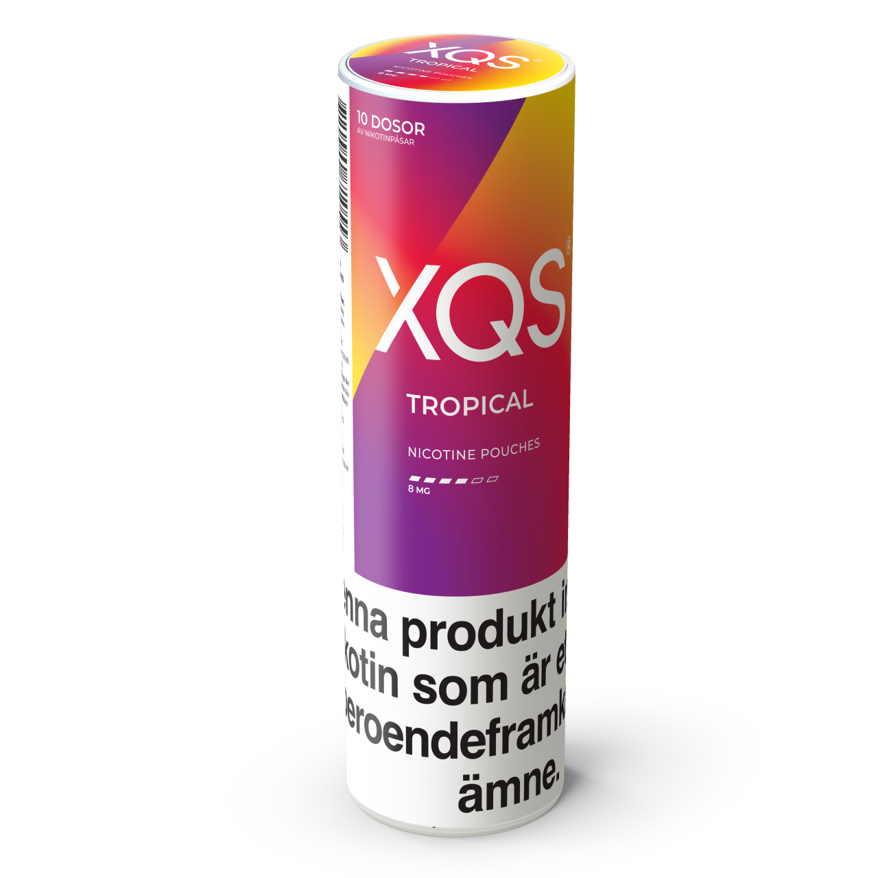 NIKOTINPORTION. En smak från de tropiska frukterna – mango och passionsfrukt. Stocken innehåller totalt 200 nikotinpåsar (10 dosor) med en styrka på 8mg nikotin per påse.